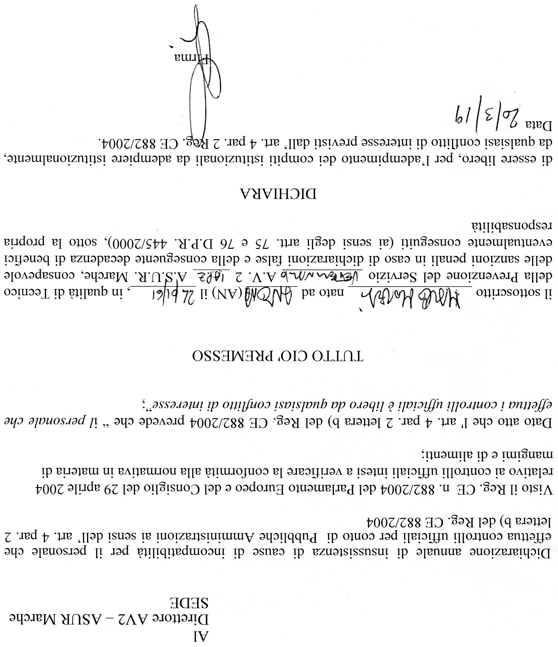 dichiarazione di insussistenza di cause di incompatibilità dipartimento di prevenzione