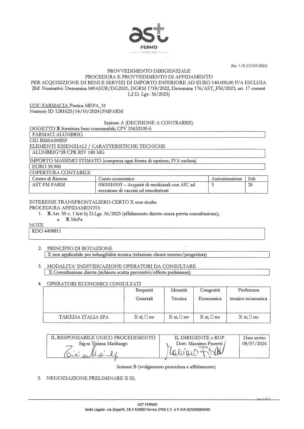 FORNITURA FARMACI ALUNBRIG