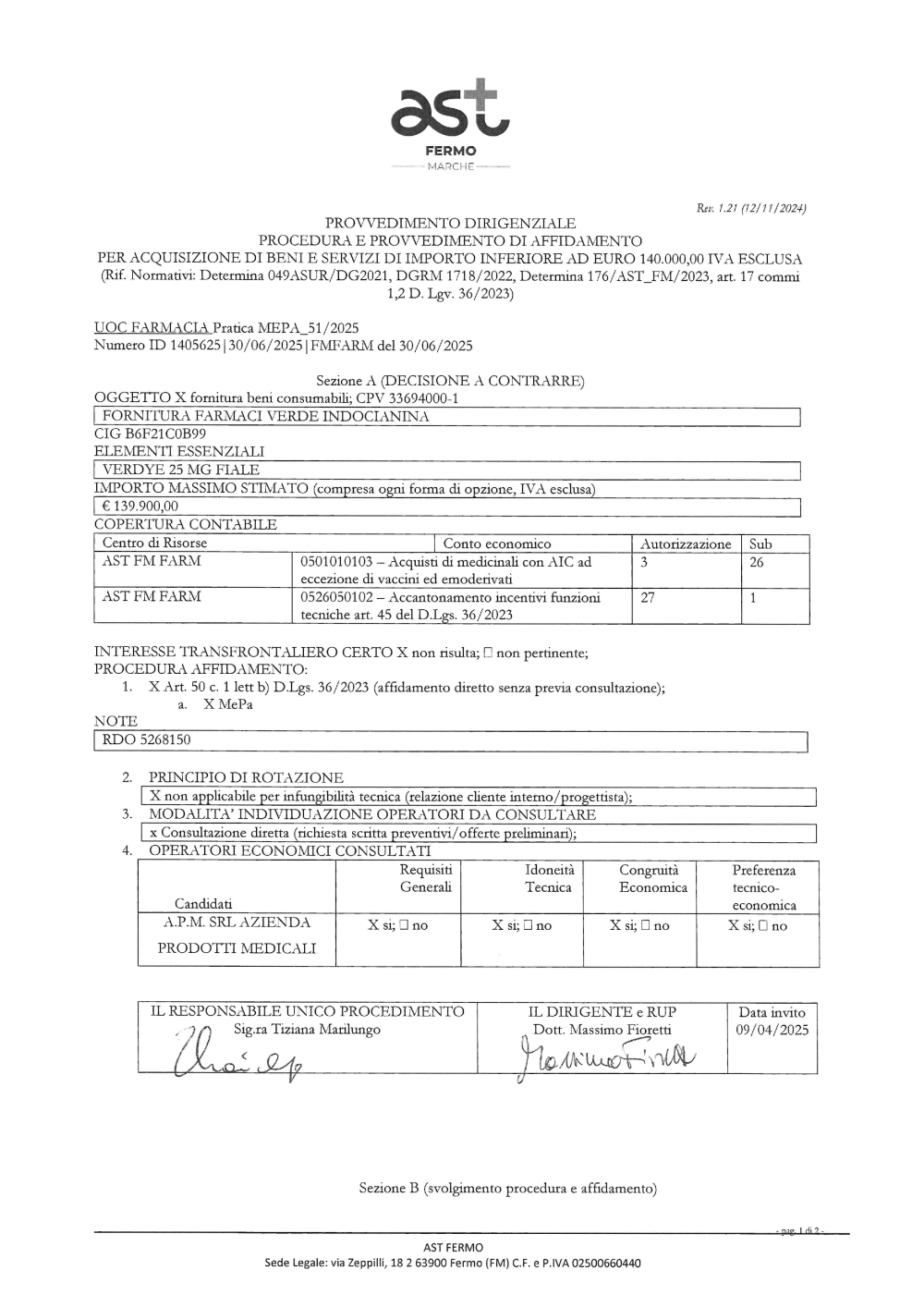 FORNITURA FARMACI VERDE INDOCIANINA_A.P.M. SRL