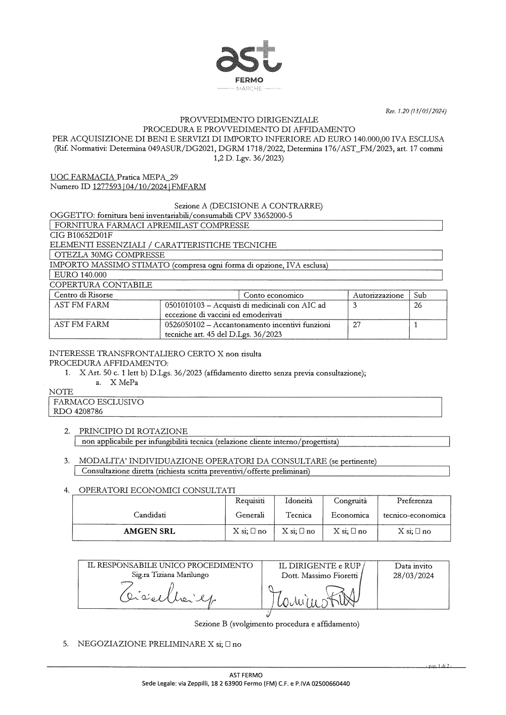 FORNITURA FARMACI APREMILAST COMPRESSE
