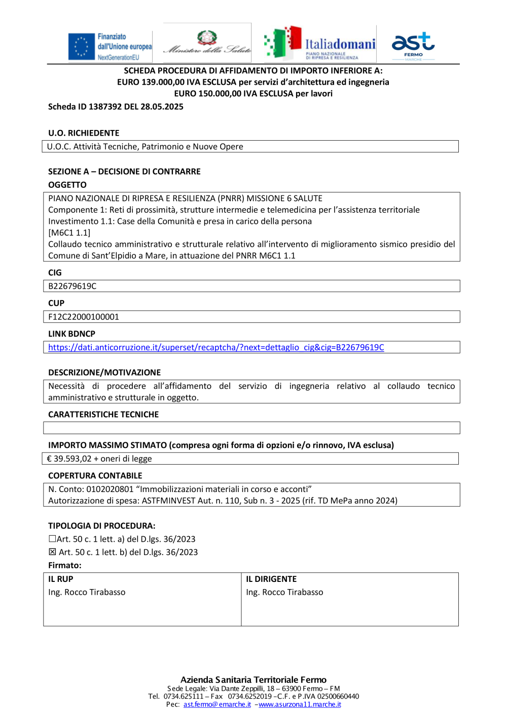 PNRR - SCHEDA ID N. 1387392 DEL 28052025 - ING. MICHELE TARULLI- Collaudo SEM