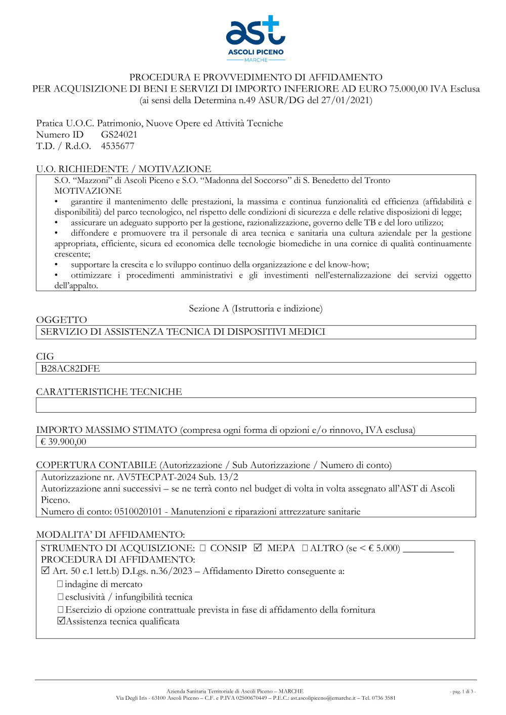 | AFFIDAMENTO SERVIZIO DI ASSISTENZA TECNICA DI DISPOSITIVI MEDICI.pdf | 2025-09-11 09:55 | 445K | ||