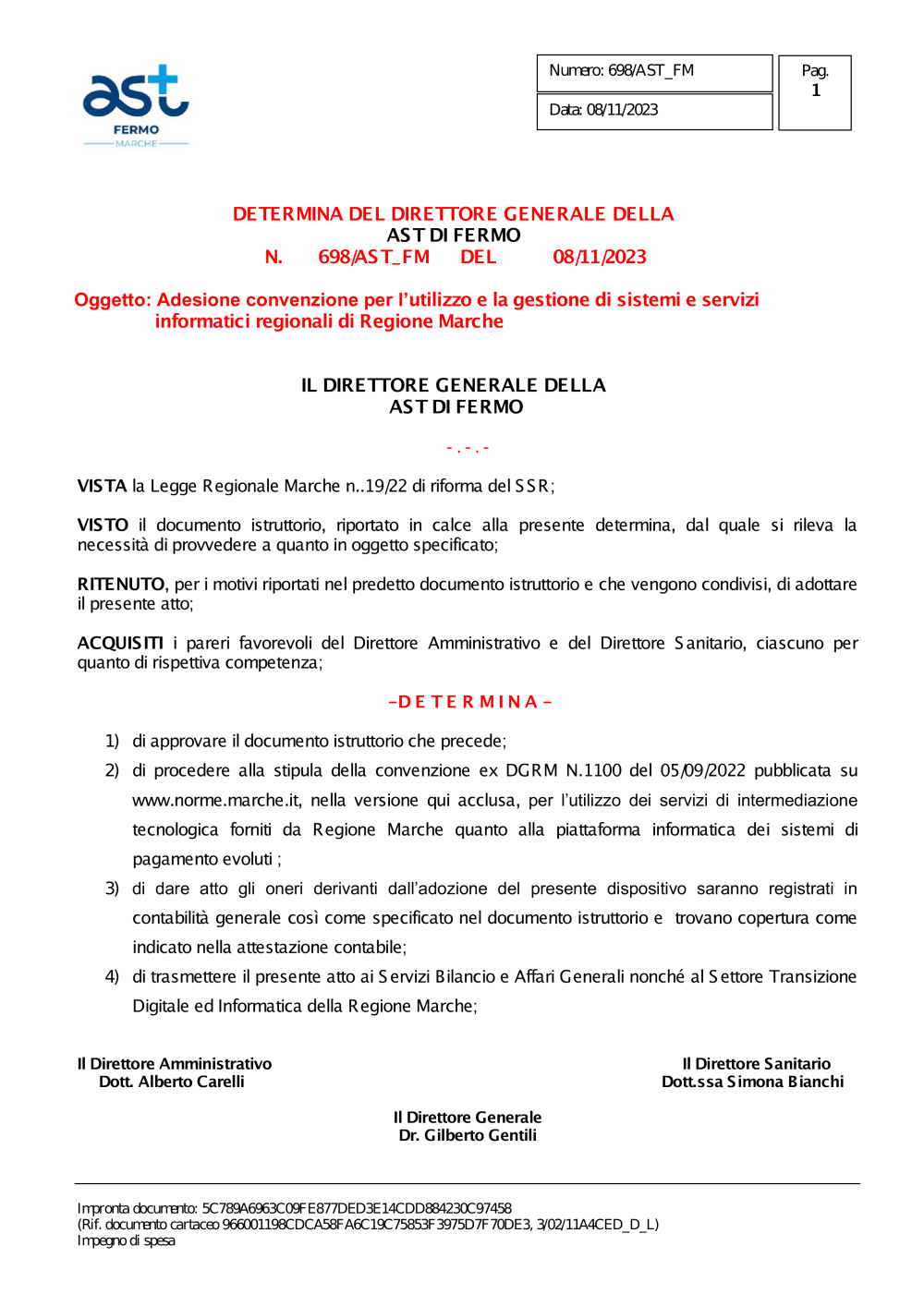 Ai sensi della L.R. Marche 19/2022 dal 01/01/2023 l'azienda ospedaliera "Ospedali Riuniti Marche Nord" è incorporata nell AST Pesaro Urbino che subentra a tutti gli effetti nell'attività e nei rapporti giuridici attivi e passivi.