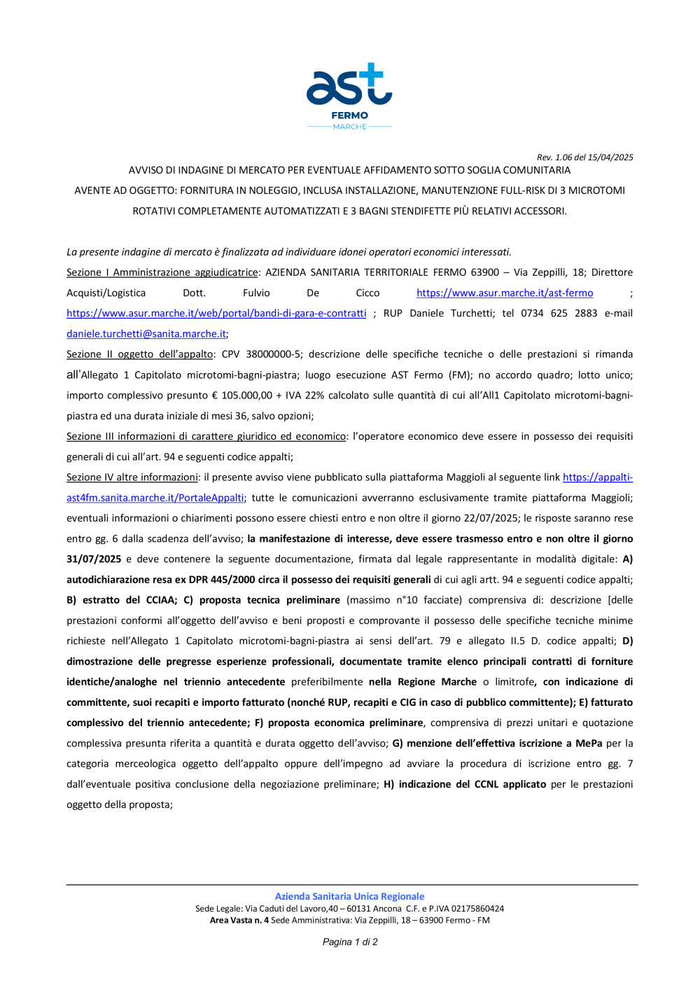 Avviso di gara microtomo
