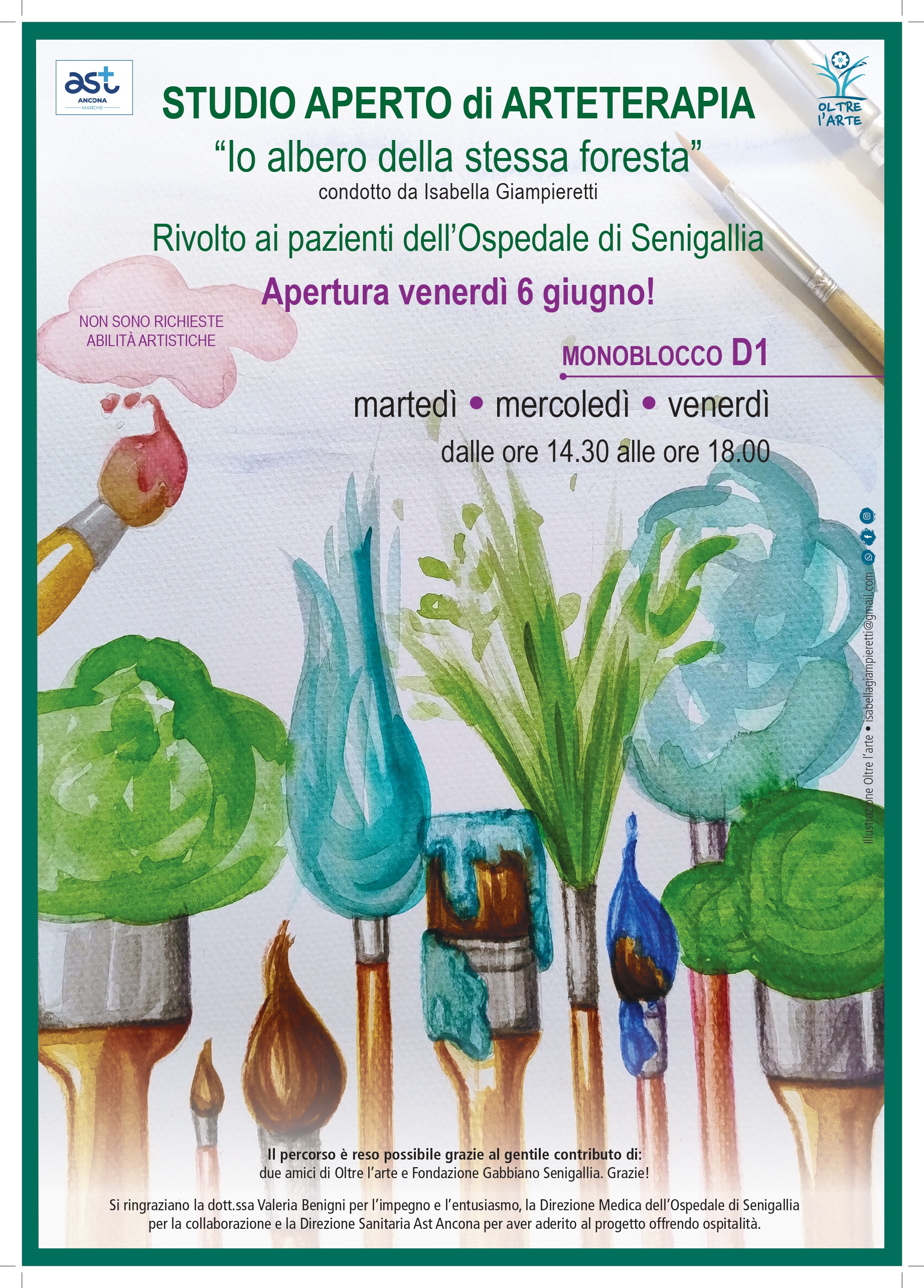 Si tratta di un progetto dedicato ai pazienti degenti presso l’Ospedale di Senigallia che possono recarsi nella stanza a loro dedicata, allestita con cura e professionalità dall’arteterapeuta Isabella, che li accompagnerà per qualche ora permettendo loro di vivere in modo diverso la situazione contingente, sentendosi parte di una comunità, condividendo in modo silenzioso il proprio sentire, dare voce per chi volesse alle proprie immagini e respirare un pò di bellezza anche dentro le mura di un ospedale. La AST Ancona ha accolto favorevolmente il progetto, mettendo a disposizione una stanza e gli arredi, e ringrazia la professionista e “Oltre l'arte” per la disponibilità e la realizzazione del progetto nell’ottica dell’umanizzazione della cura.