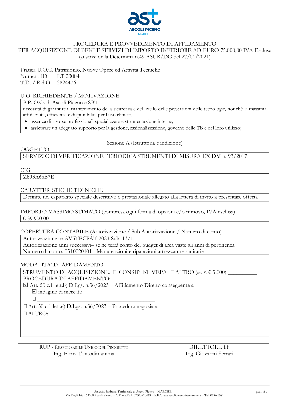 - SCHEDA AFFIDAMENTO SERVIZIO DI VERIFICAZIONE PERIODICA STRUMENTI DI MISURA EX DM 93-2017