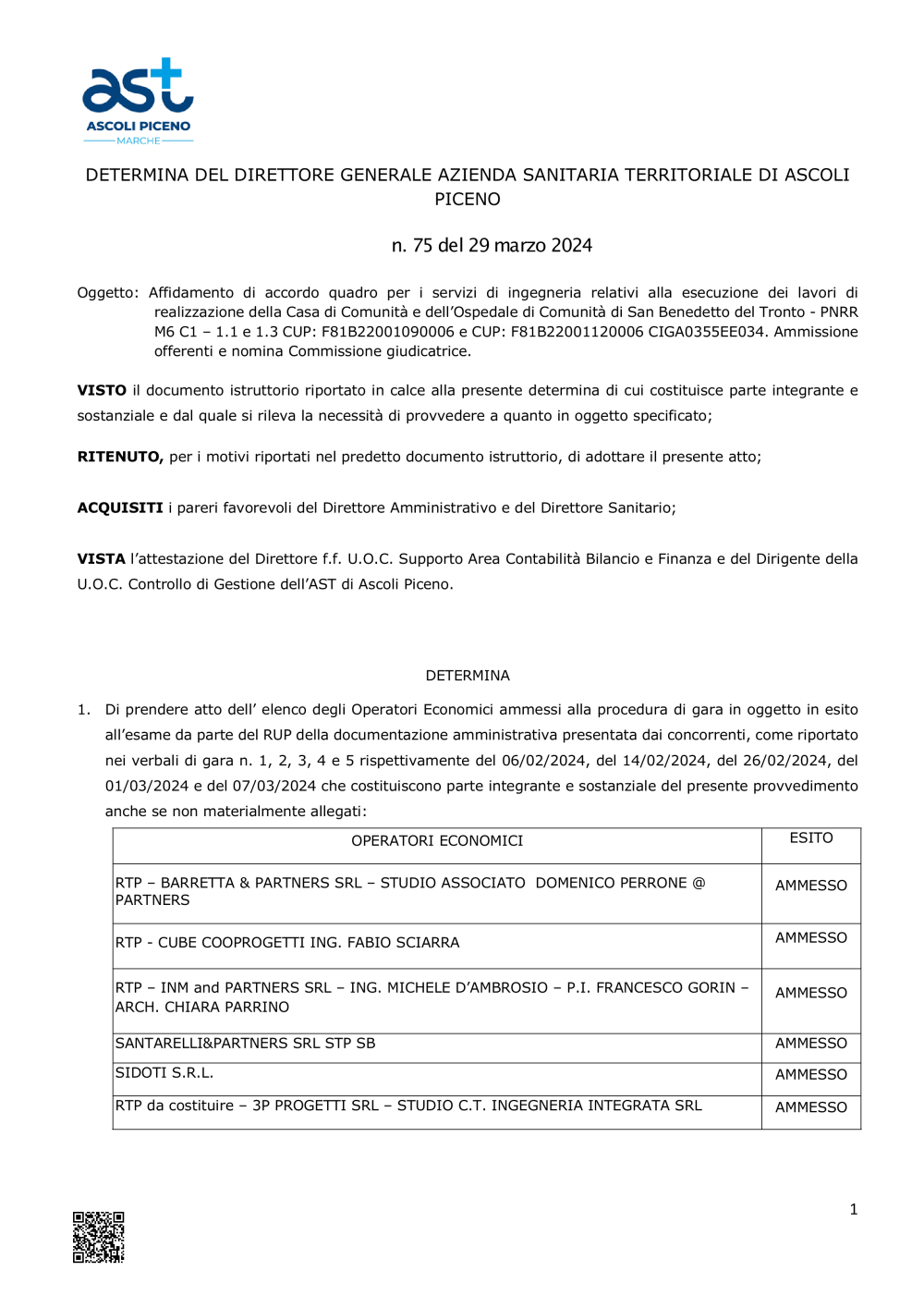- AFFIDAMENTO SERVIZI LAVORI CdC eOdC SBT AMMESSI E NOM COMM