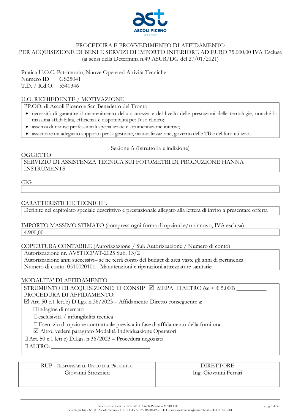 - 2025 SCHEDA AFFIDAMENTO SERVIZIO DI ASSISTENZA TECNICA SUI FOTOMETRI DI PRODUZIONE HANNA INSTRUMENTS