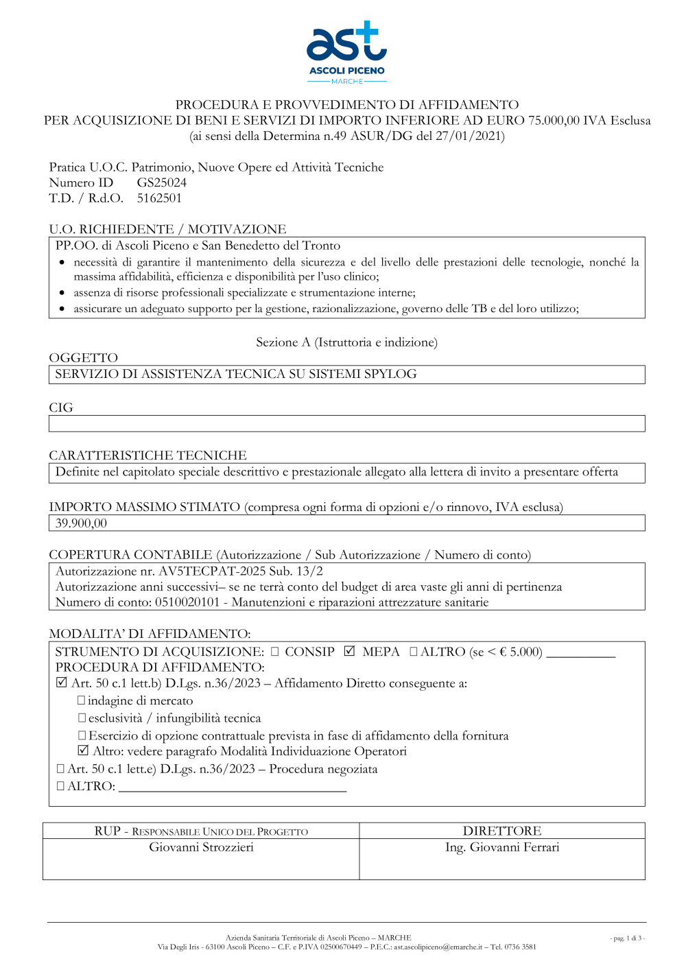 2025 SCHEDA AFFIDAMENTO SERVIZIO DI ASSISTENZA TECNICA SU SISTEMI SPYLOG