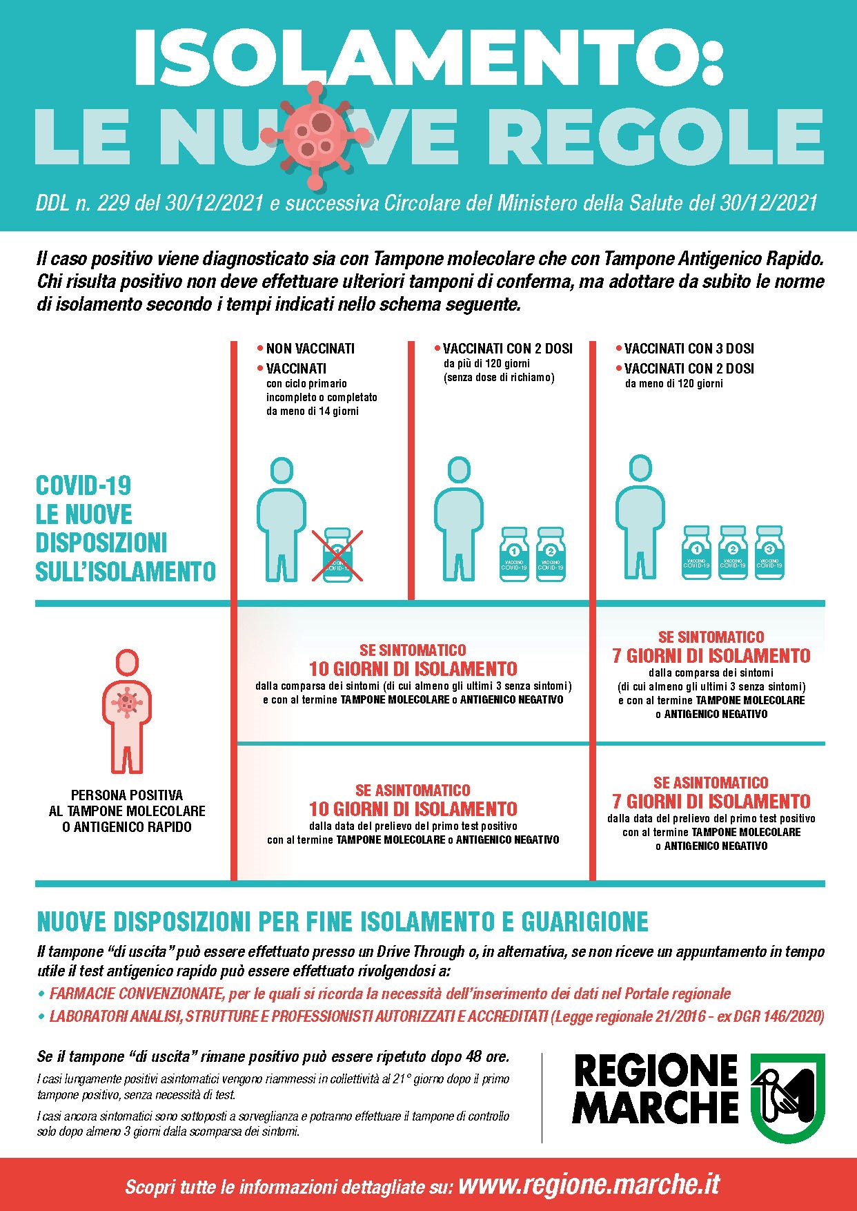 Per i casi che sono sempre stati asintomatici oppure sono stati dapprima sintomatici ma risultano asintomatici da almeno 2 giorni l'isolamento potrà terminare dopo 5 giorni a condizione che al termine del periodo di isolamento venga eseguito un test molecolare o antigenico con risultato NEGATIVO (tampone di guarigione).